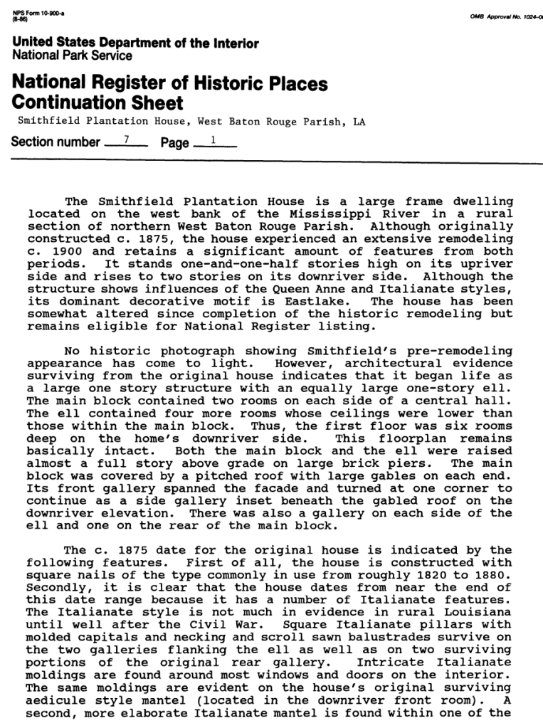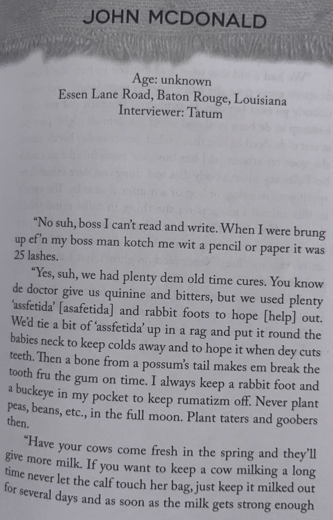 During her interview, she states that she was born in Louisiana, specifically in a cabin located on Smithfield Plantation. Based on archival research, Smithfield Plantation was located in the northern West Baton Rouge Parish near the Mississippi River. It is described as having an ‘Italianate’ architectural design that was built with square-shaped nails that were often commonly utilised during the 19th century. Interestingly, shortly after the American Civil War, this design was no longer prevalent. This plantation that she resided at was roughly 12 miles from Baton Rouge. Contextually, this is important because during the Antebellum period, plantation owners who owned a large number of enslaved men and women were a minority. In fact, in Louisiana, they made up only 0.1%, whilst the majority were non-slaveholders.