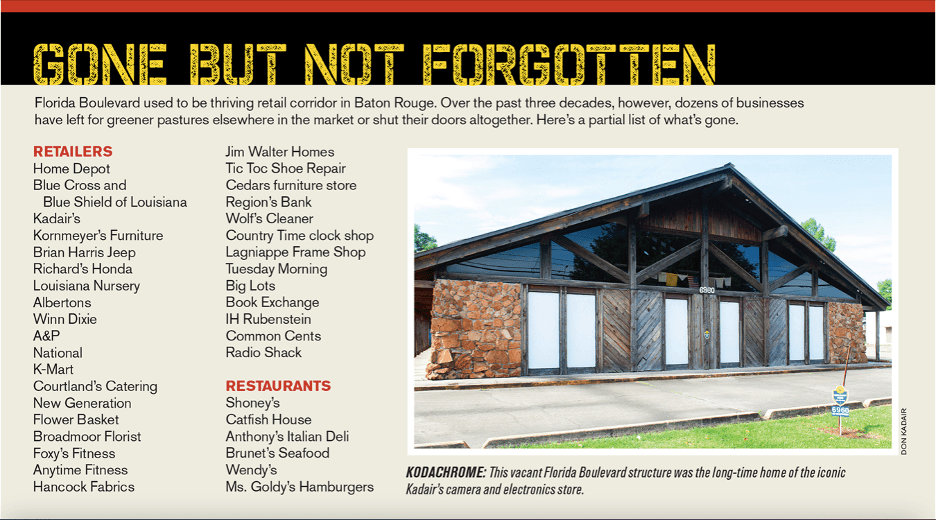 Florida boulevard once was a bustling hub for economic activity. The 1970s marked the heyday for economic prosperity along the road. The Cortana Mall was established in 1976 at the intersection of Florida and Airline Highway. The large size of the mall reflected the economic opportunities found along the road and was the largest mall in the south, with 1.2 million square feet. Over time, however, the mall was neglected and largely vacant until its demolition in March of 2021.