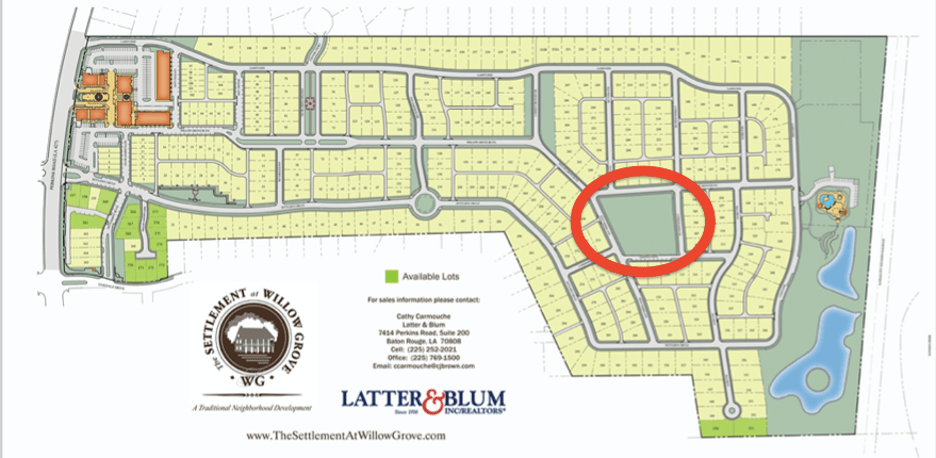 The Settlement at Willow Grove shares some similarities with Adelia at Old Goodwood as a housing subdivision located on a former Antebellum plantation. The subdivision is around the original plantation house like other plantation subdivisions. John Kleinpeter Jr. is credited with the establishment of the house after he married Amelia Sharp in 1811. Descendants of the Kleinpeter family believe that the house was built around the 1820s. There is no documentation or record of enslaved people building the house, though the Kleinpeters owned a significant number of enslaved people. According to the 1860 Slave Schedule, John P. Kleinpeter owned 131 enslaved people, and his son, George Kleinpeter Sr., owned 42 enslaved people.