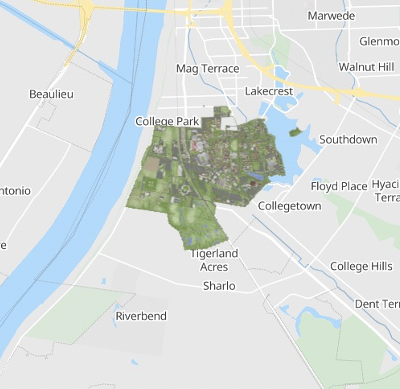 - Map of LSU’s Current Campus, retrieved April 20, 2021. LSU Mobile App. Screenshot by author.