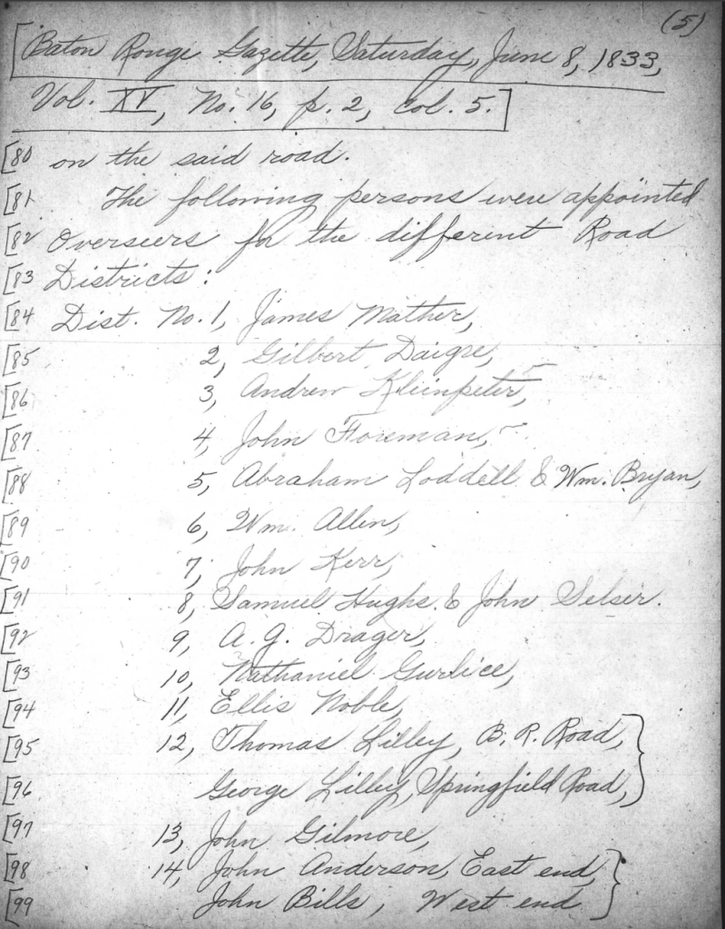 East Baton Rouge Parish (La.). Police Jury, 1827-1928, reel 153-172, Louisiana and Lower Mississippi Valley Collections, Louisiana State University Special Collections.
