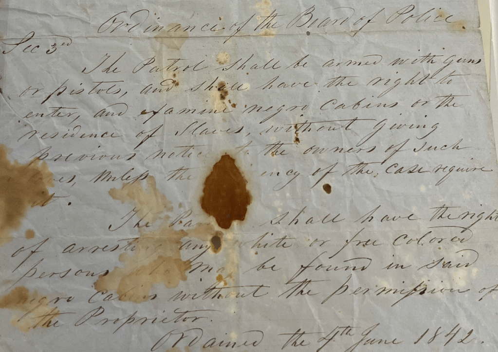 “Be it ordained… it shall be the duty of every free white male inhabitant of the town of Baton-Rouge, of the age of sixteen years of age and upwards, to patrol the streets, within the limits of the town of Baton-Rouge, when notified to do so by the Town Officer.”