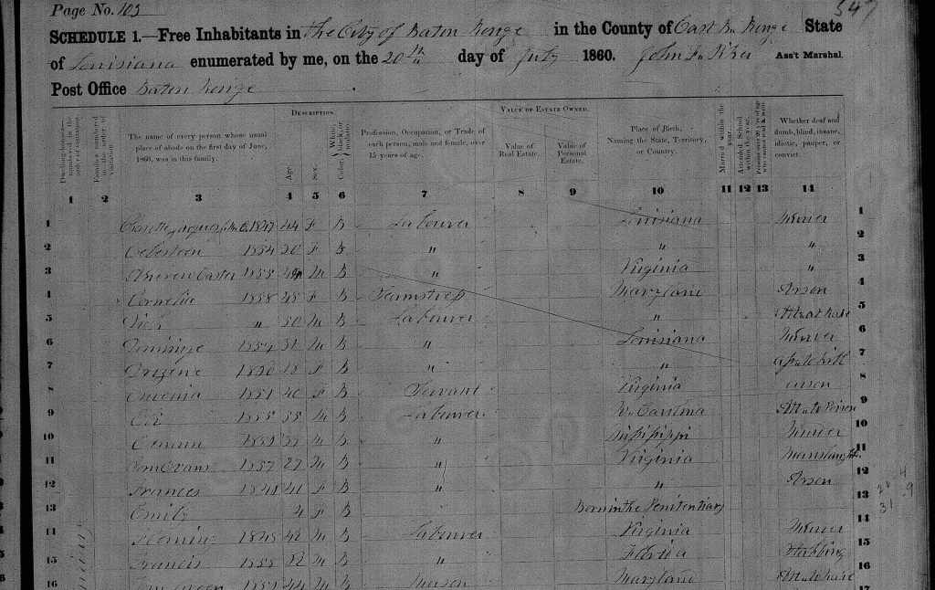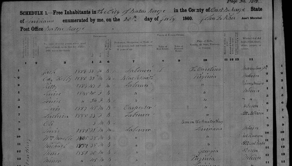In addition, for the women who were still in the Penitentiary when the Union Army occupied Baton Rouge, the uncertainty of whether they were left behind in the city or taken to New Orleans also complicates the process of locating them. While research into the records of both the Freedman’s Bureau and the US Census reveals several instances of individuals who “could be” one of these enslaved women, there is hardly any certainty in those claims. More extensive research into the original court cases of these women, many of which are likely buried in various parish archives, could provide more details to aid in identifying these women after the Civil War, but that is still only a possibility
