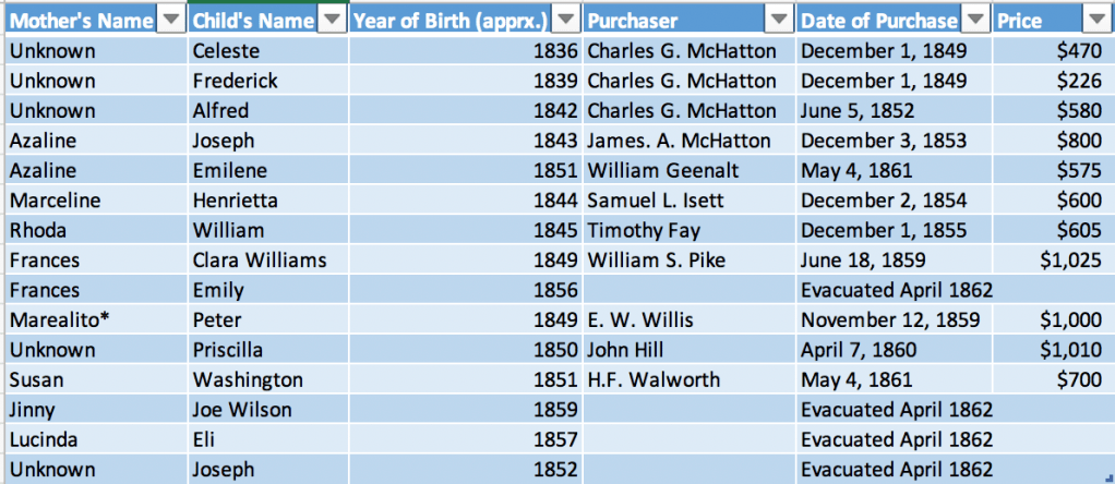 Most of these children were purchased by men closely affiliated with the Penitentiary, opening up the possibility that some of these children may have been purchased by the men who fathered them.