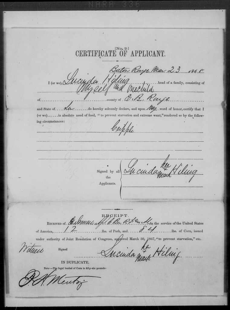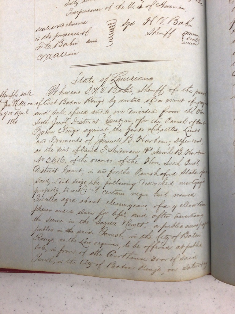 A few of the children were purchased by prominent slaveholders from Baton Rouge, such as Priscilla, who in 1860 was purchased by John Hill. Almost forty years after he purchased Priscilla for $1,010, John Hill would donate $33,000 dollars to Louisiana State University as the endowment for Hill Memorial Library.