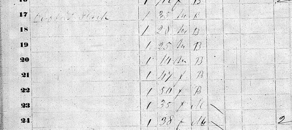Prior to her imprisonment, Rhoda had been the slave of a man named Robert Stark in New Orleans. She was returned to him after being pardoned, and an enslaved woman matching Rhoda’s age appears on Robert Stark’s slave schedule for the 1860 Census.